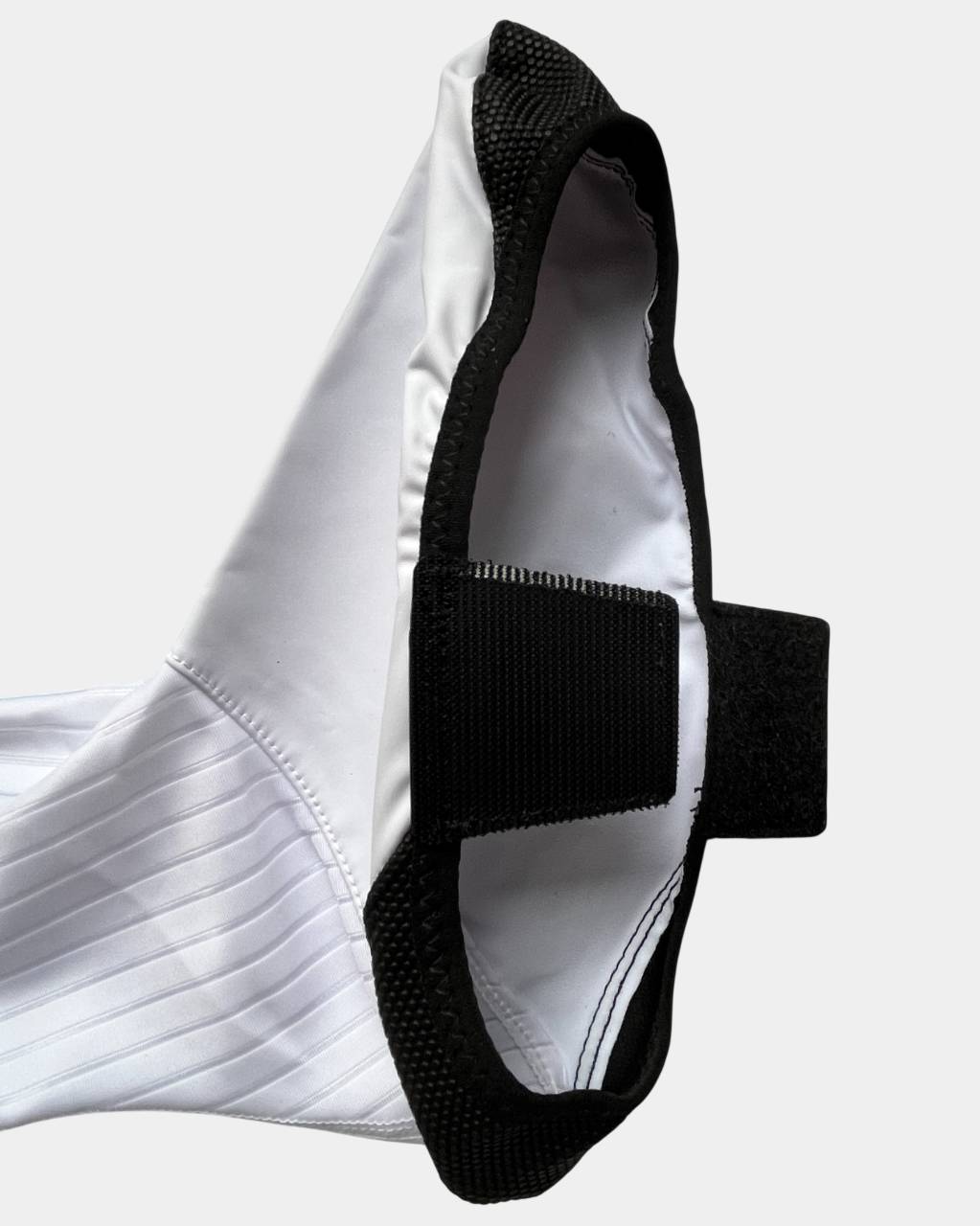 Tested in the wind tunnel, the dual-layer profiled design reduces drag and improves airflow around the leg, delivering a gain of about 5 watts in time trials or training.